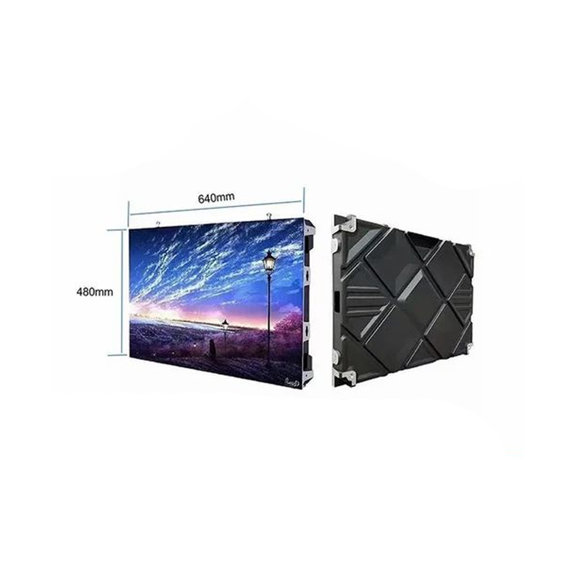 تتكون الشاشة من وحدات تُعرف بـ الموديولات (Modules) أو البلاطات، كل واحدة منها بمقاس 32 سم عرض × 16 سم ارتفاع. وبمجرد تجميع هذه البلاطات بدقة، يتم تكوين شاشة عملاقة تناسب أي مقاس أو تصميم مطلوب.